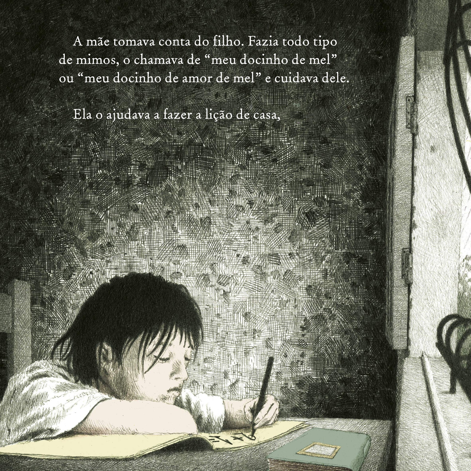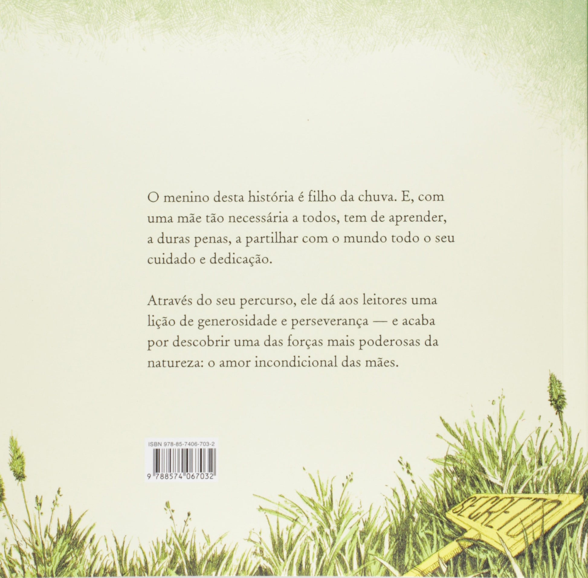 O menino desta história é filho da chuva. E, com uma mãe tão necessária a todos, tem de aprender, a duras penas, a partilhar com o mundo todo o seu cuidado e dedicação.