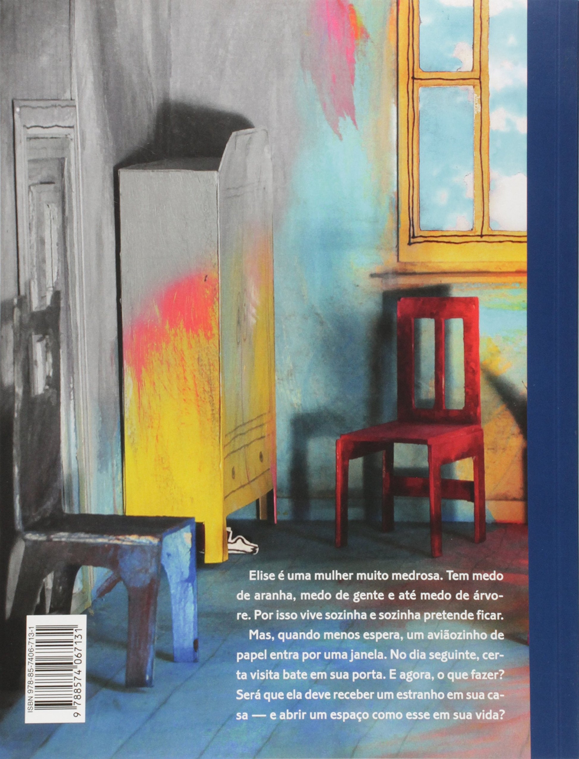 Elise é uma mulher muito medrosa. Tem medo de aranha, medo de gente e até medo de árvore. Por isso vive sozinha e sozinha pretende ficar. Mas, quando menos espera, um aviãozinho de papel entra por uma janela, atrapalhando sua paz diária.